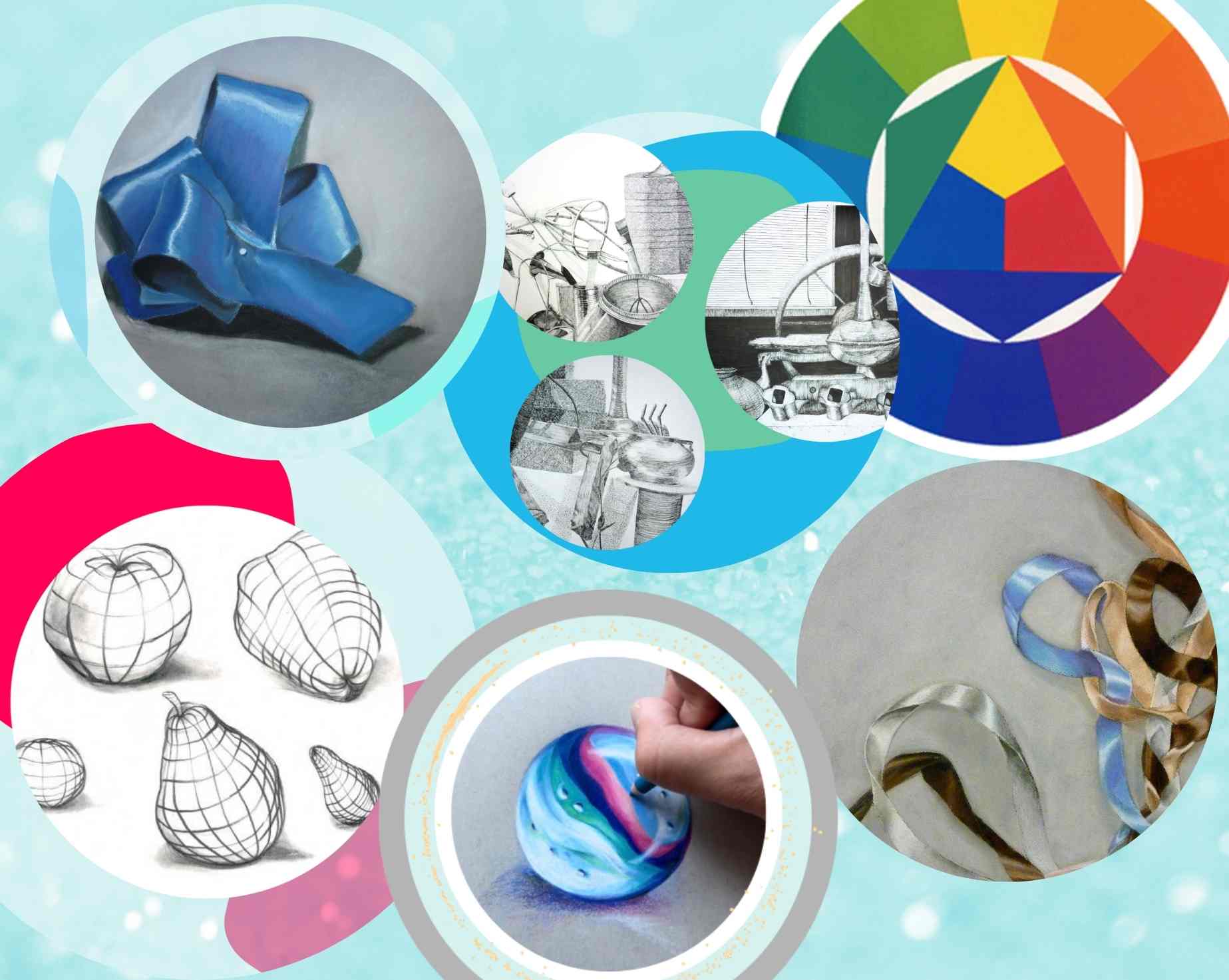 What we teach: All lessons include foundational art concepts such as the elements of line, color theory, and composition. Our resources are designed so that students can develop their creative and artistic voice through creative practice and our project matrix system.