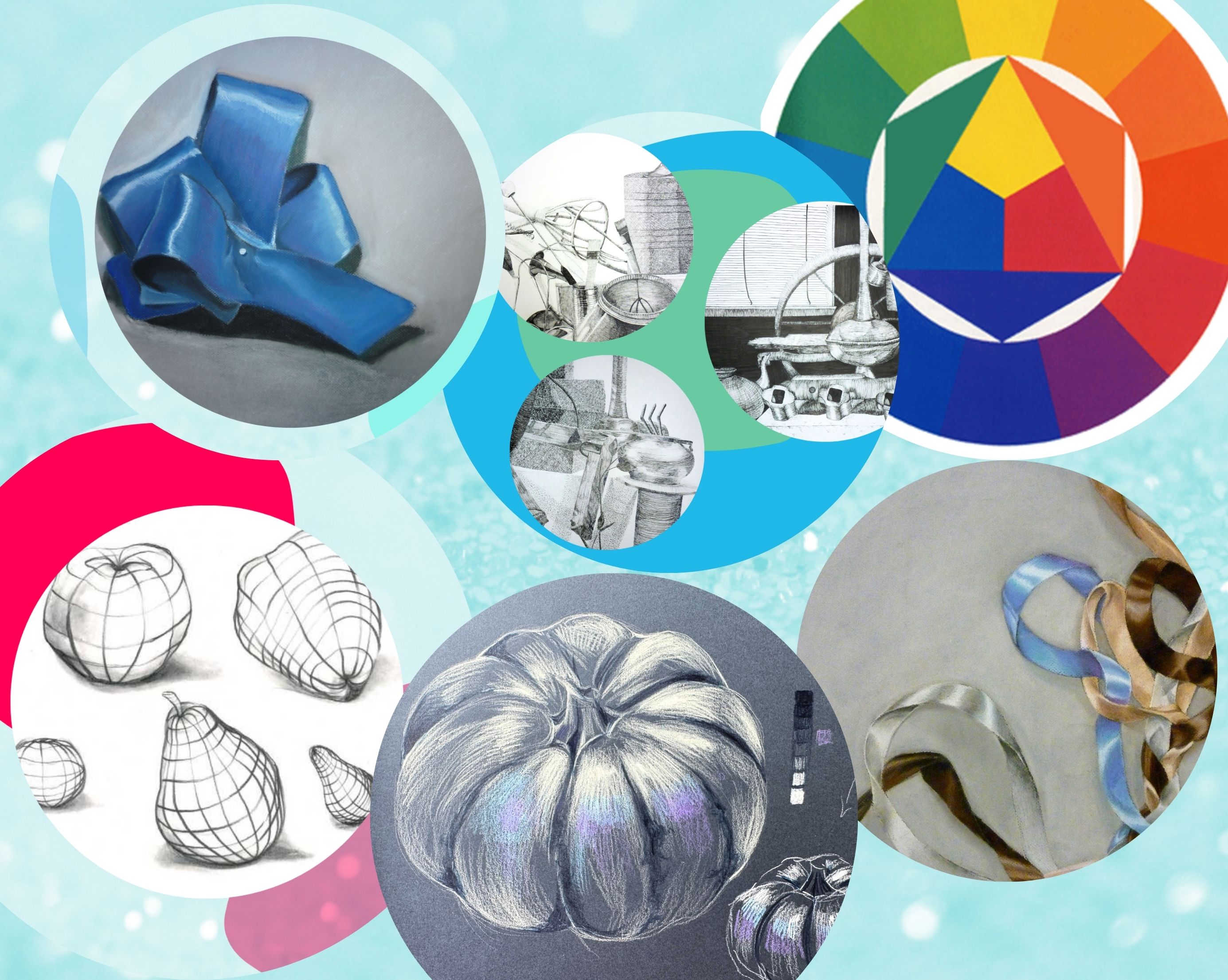 Covers core studio skills: elements of line, shading, composition, color theory, texture, and more.